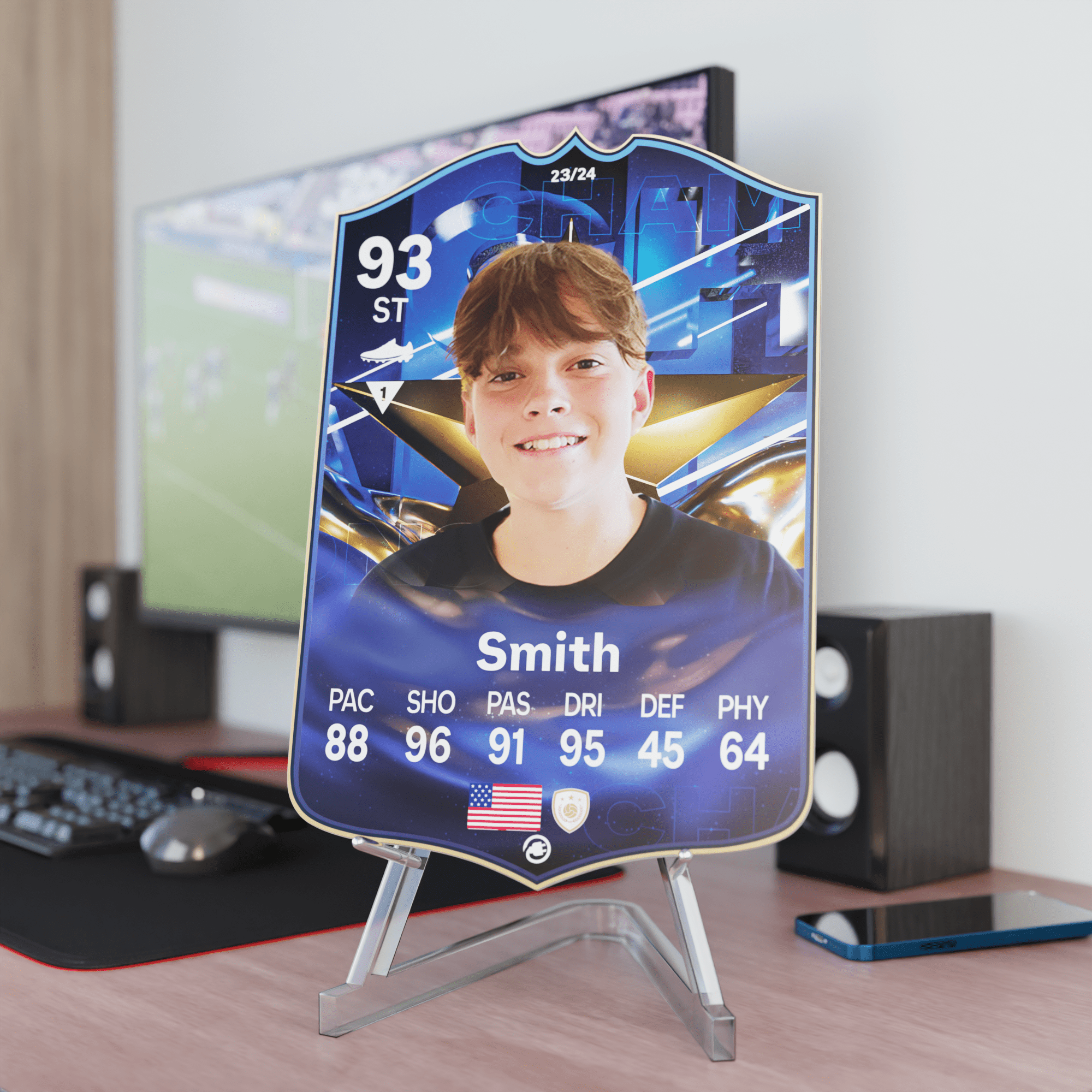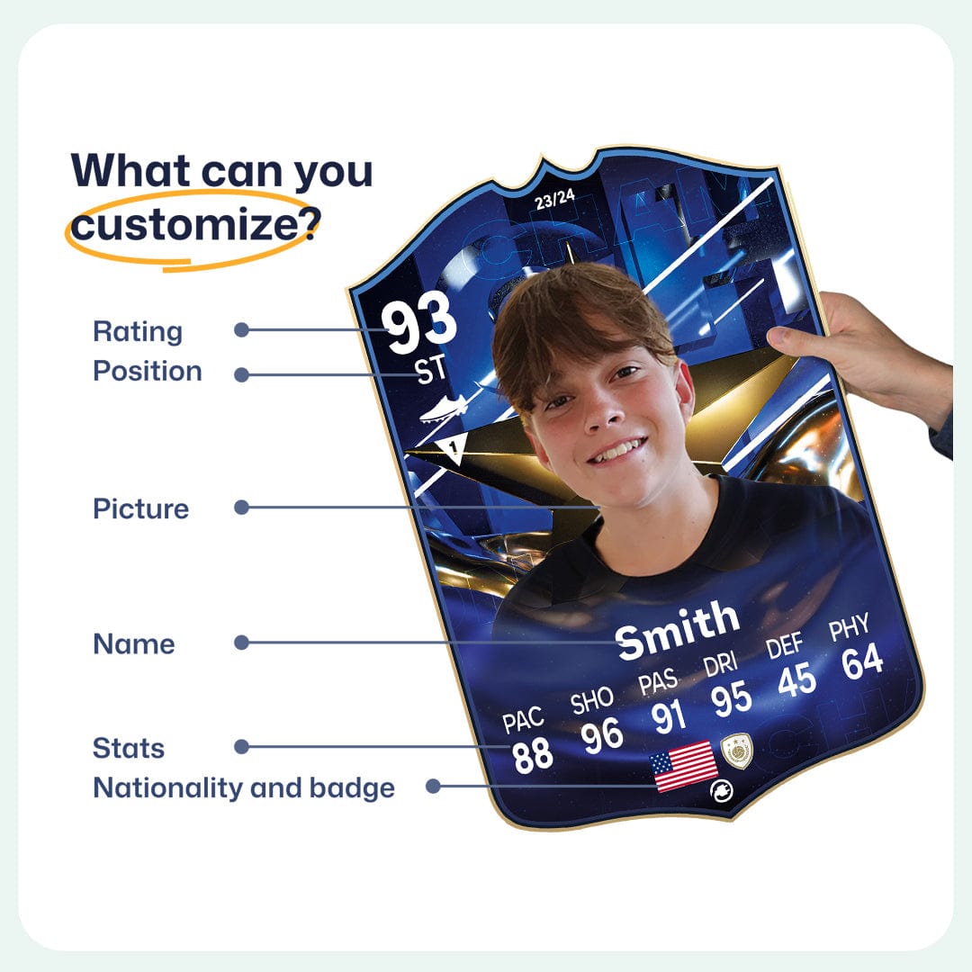 Yes! Our football card designers will remove the background from the photo you upload so it looks just like the football cards you might’ve seen games like EA FC 25, EA FC 24 or FIFA. We’ll also position the photo perfectly on the football card so it looks great. If there are any problems with the quality of your photo, we’ll reach out and let you know. Plus, our website's AI will remove the background on the image for visual purposes before purchase so you can see it without a background on the card.