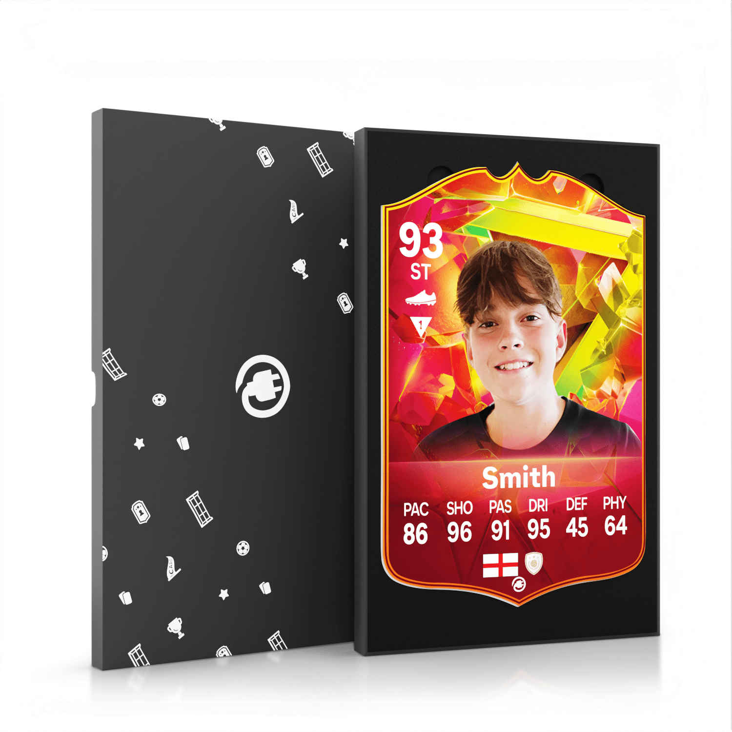 CardsPlug is home to the world’s favourite personalised football cards. Our easy football card builder lets you make a real life football card with your own name, photo, and skill ratings. With 100+ designs to choose from and some inspired by EA SPORTS FC 26 cards seen in EA FC 26, EA FC 25 and FC 24 as well as FIFA cards seen in games like FIFA 23 and FIFA 22.