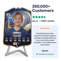 Yes! Our football card designers will remove the background from the photo you upload so it looks just like the football cards you might’ve seen games like EA FC 25, EA FC 24 or FIFA. We’ll also position the photo perfectly on the football card so it looks great. If there are any problems with the quality of your photo, we’ll reach out and let you know. Plus, our website's AI will remove the background on the image for visual purposes before purchase so you can see it without a background on the card.
