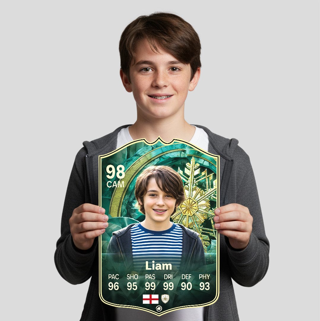 CardsPlug is home to the world’s favourite personalised football cards. Our easy football card builder lets you make a real life football card with your own name, photo, and skill ratings. With 100+ designs to choose from and some inspired by EA SPORTS FC 26 cards seen in EA FC 26, EA FC 25 and FC 24 as well as FIFA cards seen in games like FIFA 23 and FIFA 22.