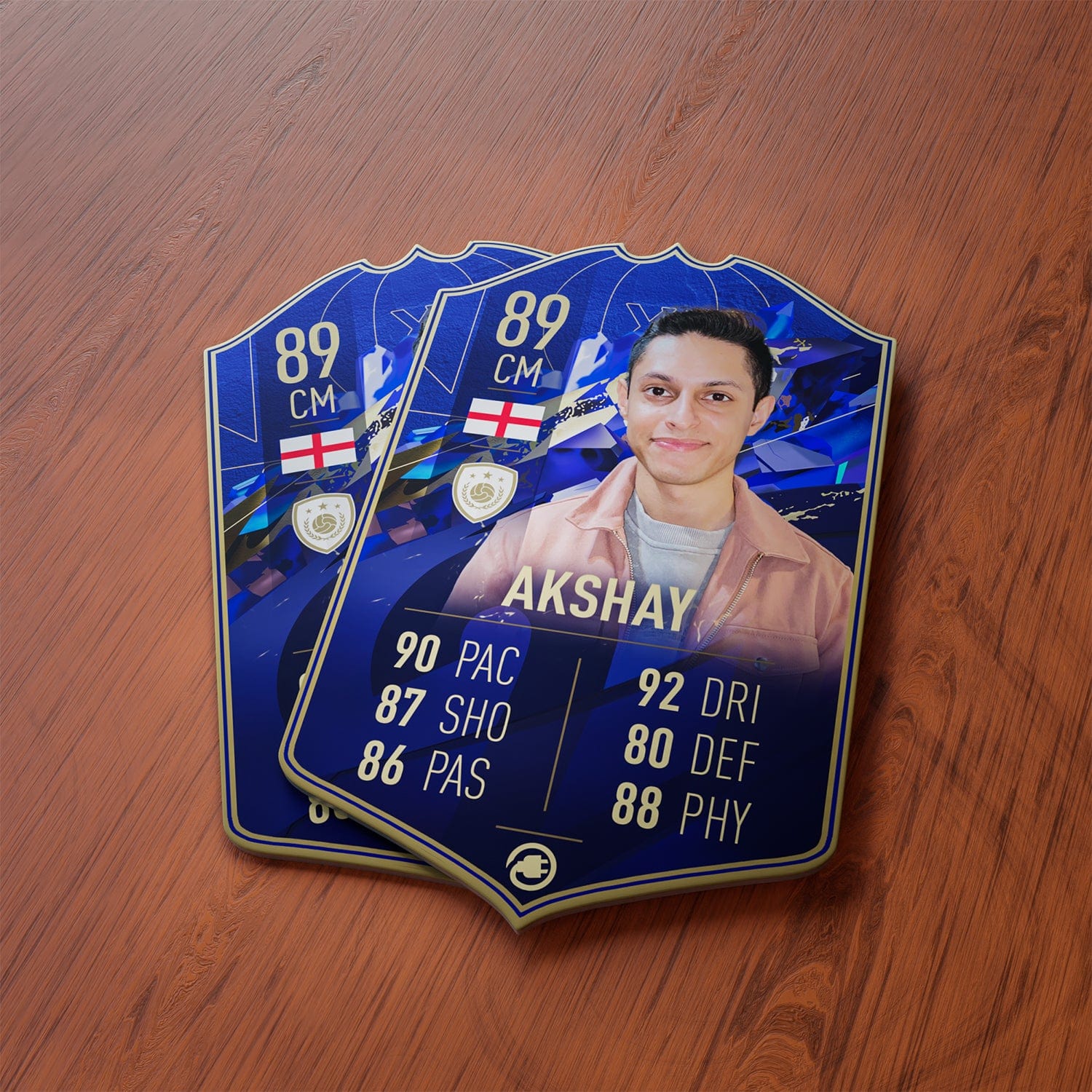 CardsPlug is home to the world’s favourite personalised football cards. Our easy football card builder lets you make a real life football card with your own name, photo, and skill ratings. With 100+ designs to choose from and some inspired by EA SPORTS FC 26 cards seen in EA FC 26, EA FC 25 and FC 24 as well as FIFA cards seen in games like FIFA 23 and FIFA 22.