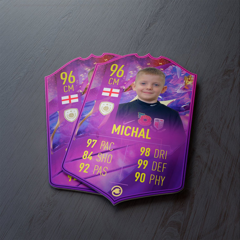 CardsPlug is home to the world’s favourite personalised football cards. Our easy football card builder lets you make a real life football card with your own name, photo, and skill ratings. With 100+ designs to choose from and some inspired by EA SPORTS FC 26 cards seen in EA FC 26, EA FC 25 and FC 24 as well as FIFA cards seen in games like FIFA 23 and FIFA 22.