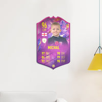 Our football card builder lets you choose between two different card materials. Our Standard cards are made of a ultra-strong variety of Foamex (not cardboard or foam!). This material has a lovely gloss finish and is also super durable. Our world-exclusive Metal football cards have a matte finish and are slightly heavier. Both look amazing and will last forever.