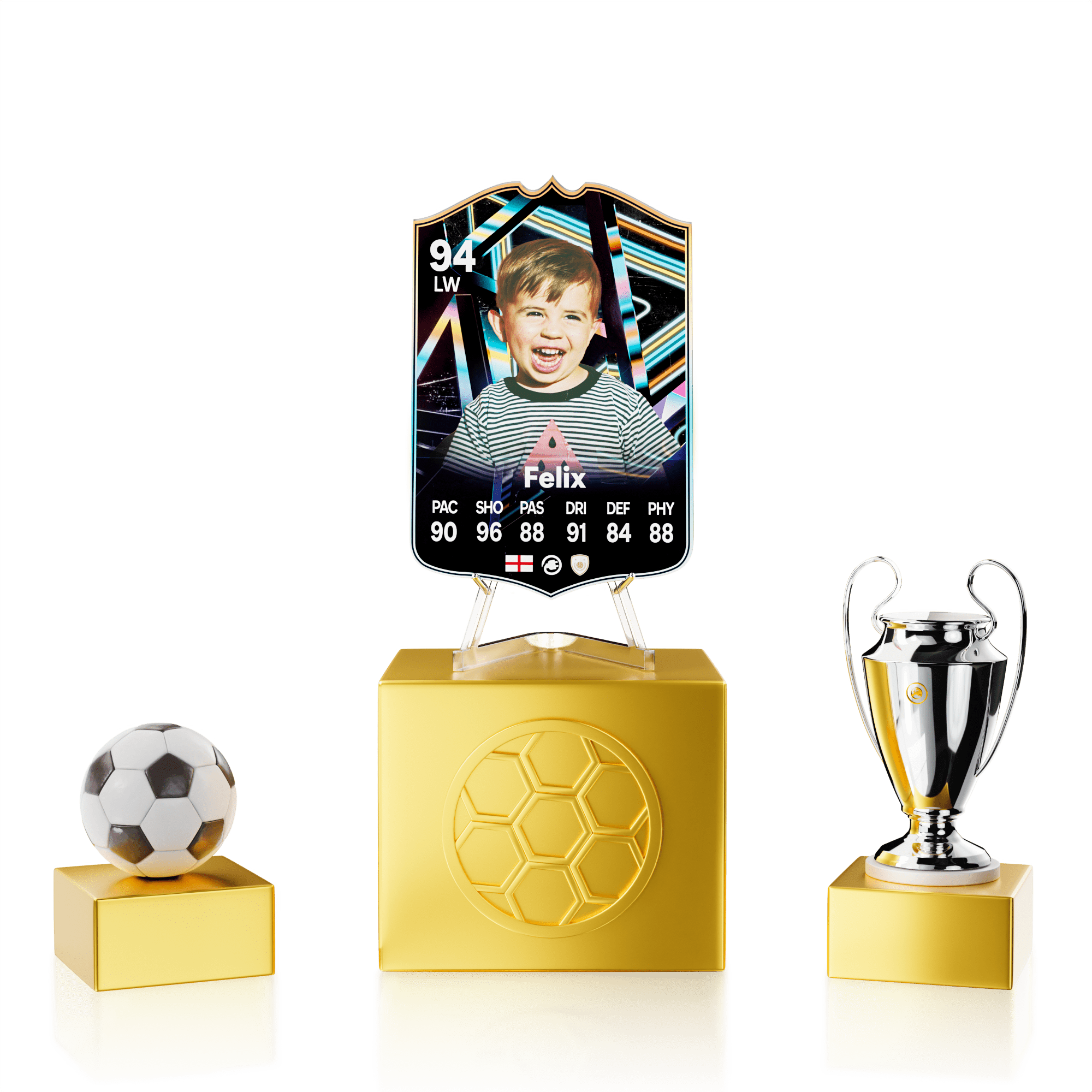 CardsPlug is home to the world’s favourite personalised football cards. Our easy football card builder lets you make a real life football card with your own name, photo, and skill ratings. With 100+ designs to choose from and some inspired by EA SPORTS FC 26 cards seen in EA FC 26, EA FC 25 and FC 24 as well as FIFA cards seen in games like FIFA 23 and FIFA 22.